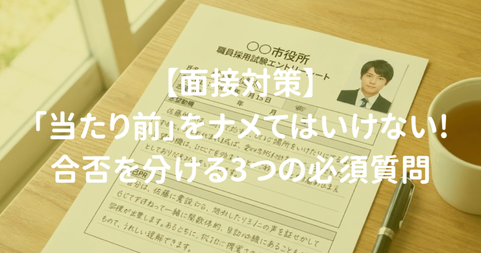 今日は、どの自治体でも、一次面接でも最終面接でも、必ず聞かれる「最初のジャブ」のような3つの質問と、その攻略法について解説します。